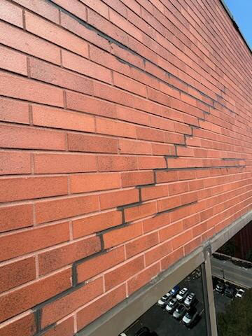 Minor surface cracks in the brick facade were repaired. We also removed deteriorated control joint caulking at brick-to-brick joints. New control joint caulking was then installed using Dow silicone sealant to properly seal the facade and reduce future leaking at movement joints.