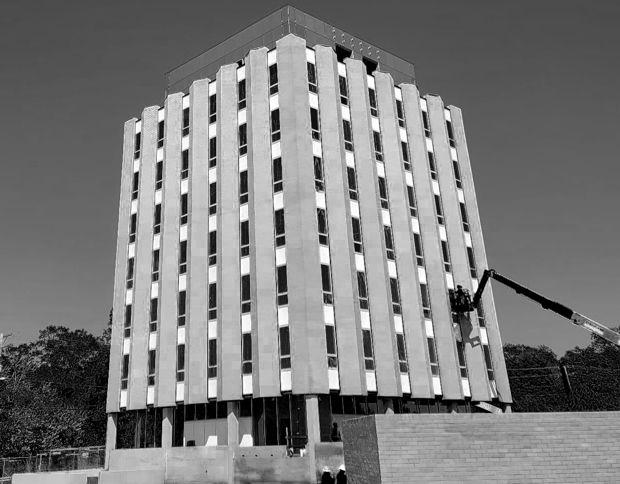 COMPLETED BUILDING FACADE PROJECT: Window Glass & Frame Restoration at 4001 E Independence Blvd, Charlotte, NC
